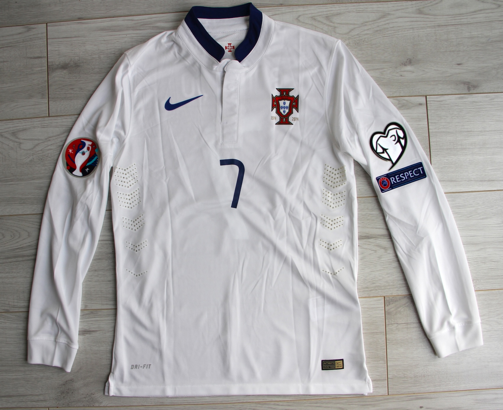 Wyjazdowa koszulka reprezentacji Portugalii z Mistrzostw Świata 2014 w Brazylii w wersji meczowej (Match) z długim rękawem.