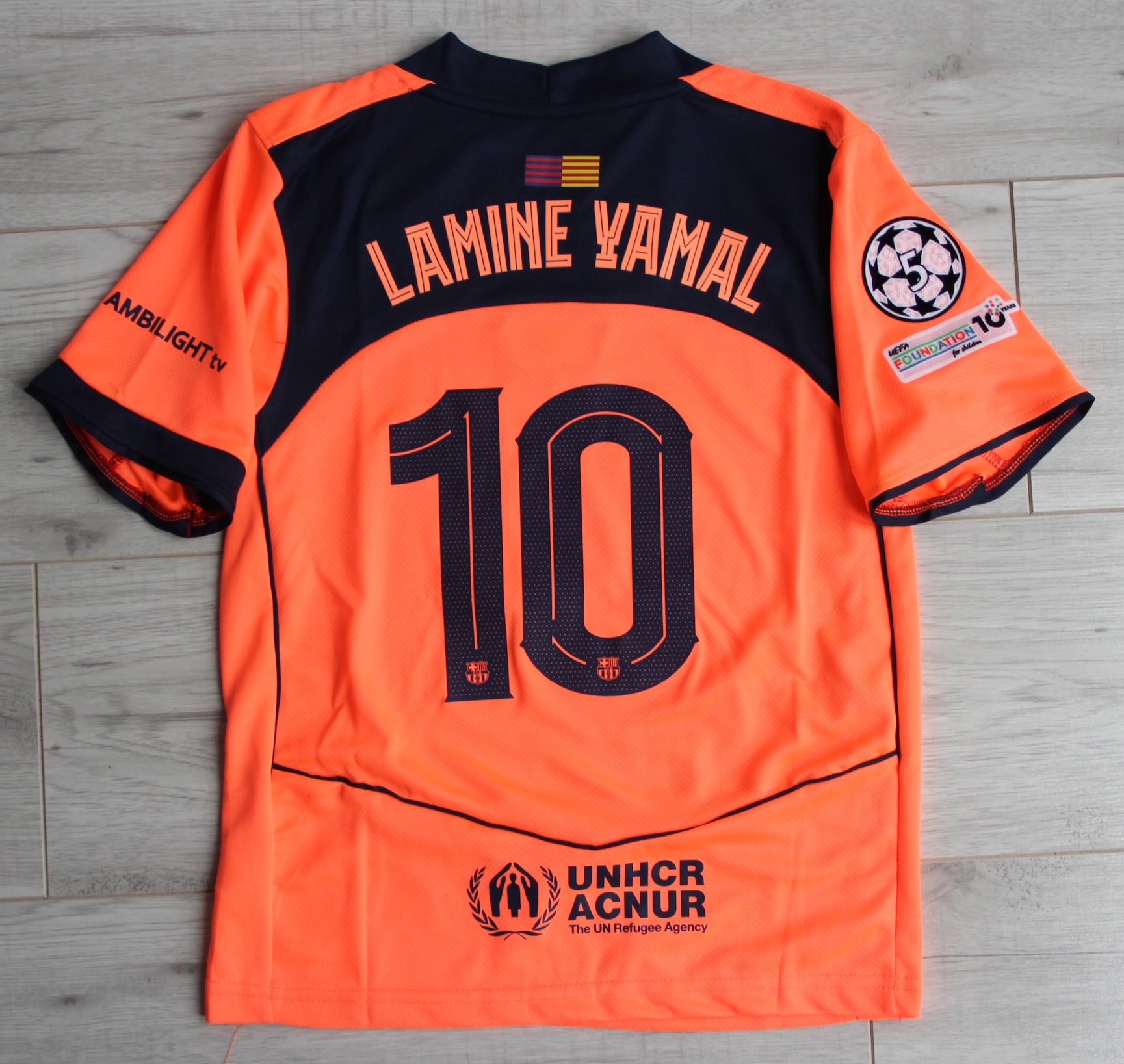 Trzeci komplet FC Barcelony z sezonu 2025/26 to hołd dla młodości i kreatywności – barwy inspirowane słynnym strojem z 2014/15 powracają w świeższym, neonowym wydaniu. Lamine Yamal, nowa gwiazda Blaugrany kontynuuje tradycję noszenia numeru 10, symbolu wielkich legend klubu – od Messiego po Ronaldinho. 🌟