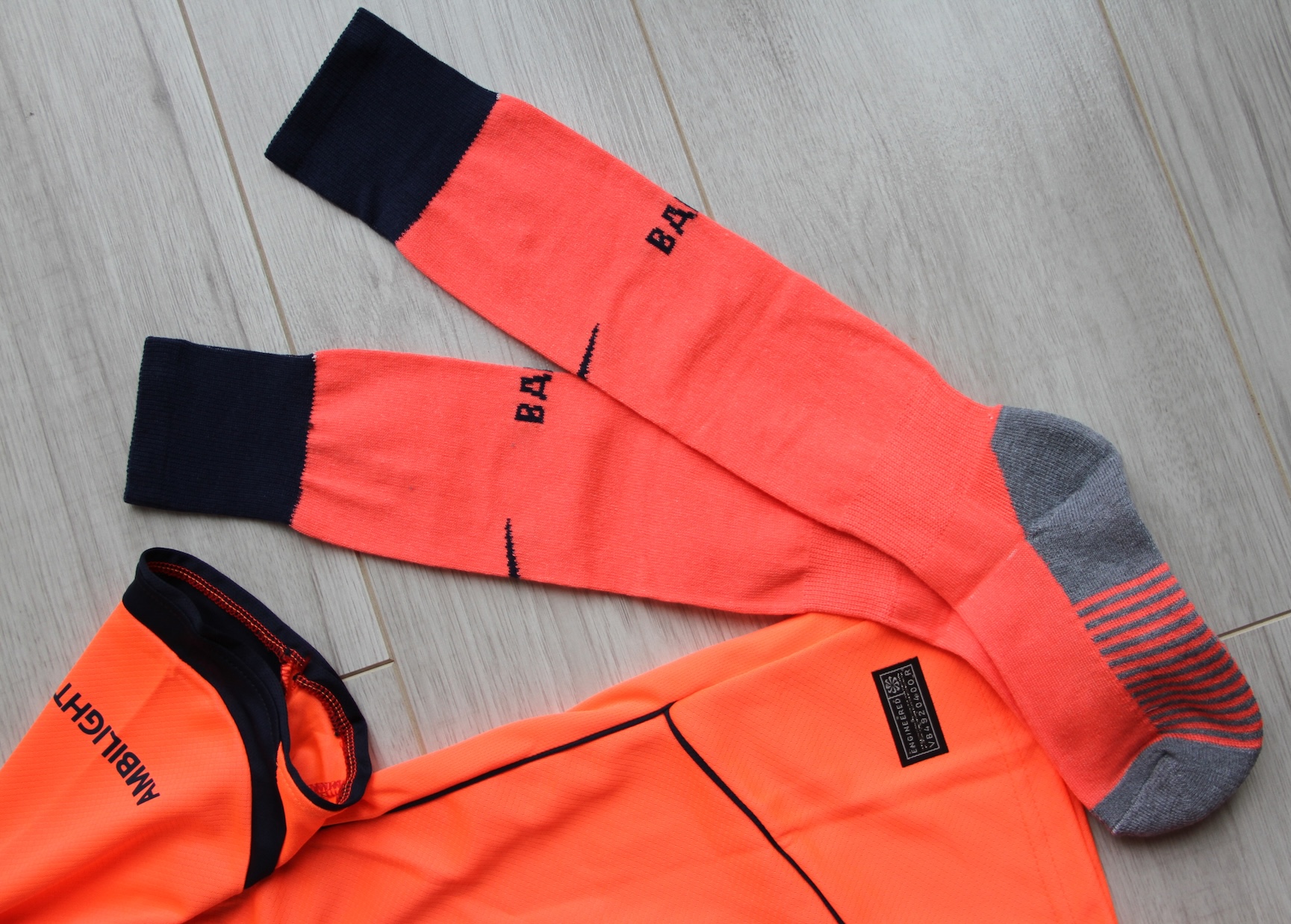 Zestaw zawiera koszulkę, spodenki i getry – całość nowa, z metkami.