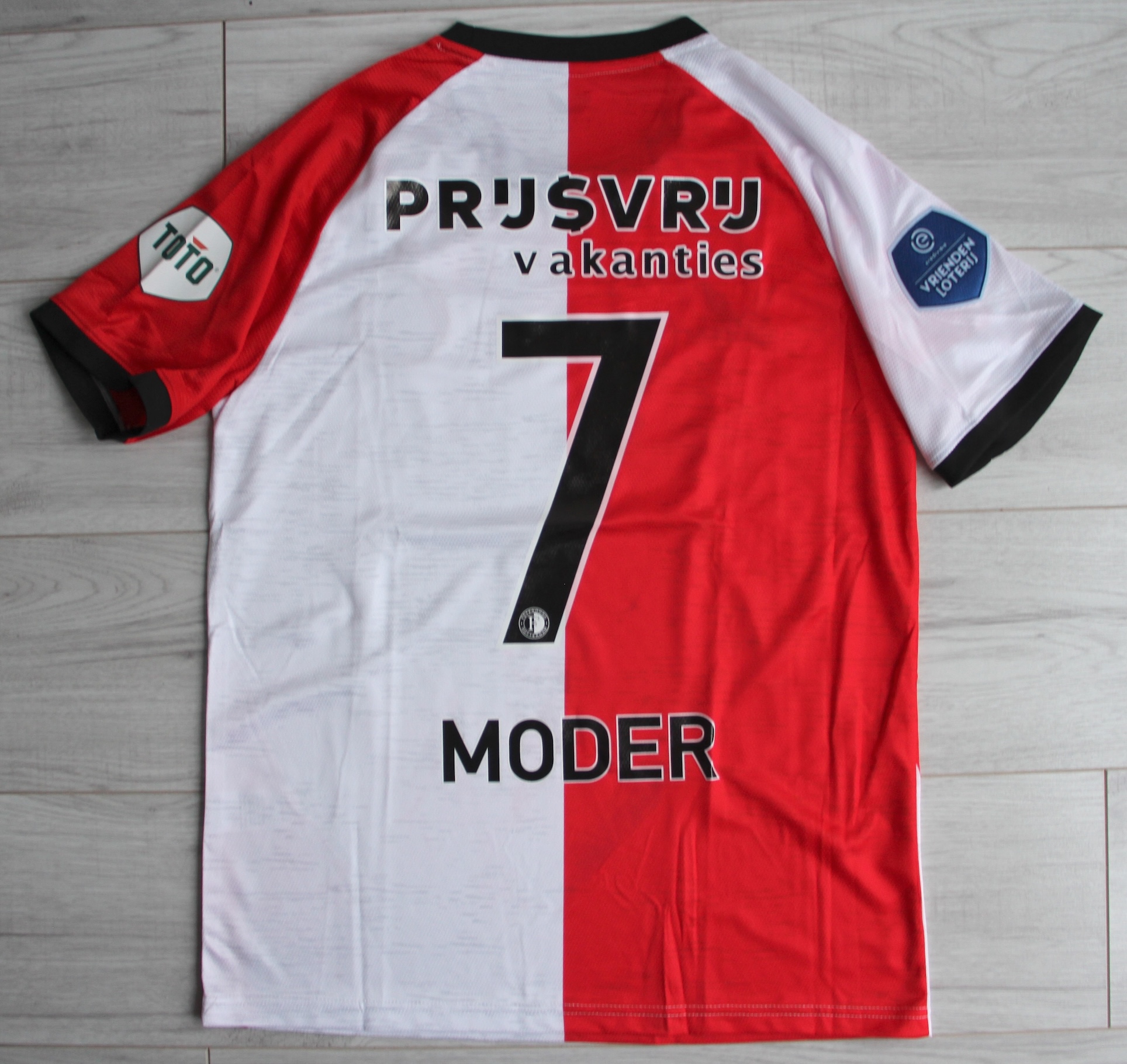 🔥 Oficjalna domowa koszulka Feyenoord Rotterdam z sezonu 2024/25 – w kultowym, dzielonym na pół czerwono‑białym układzie, który od dekad symbolizuje dumę De Kuip. Na plecach numer 7 oraz nazwisko MODER – energia, ambicja i polski akcent w Eredivisie.