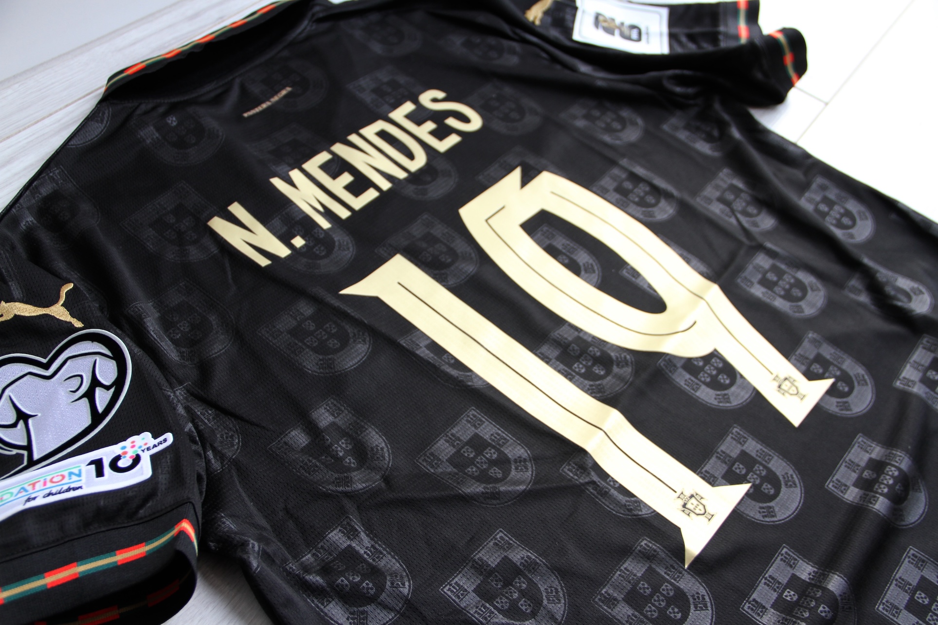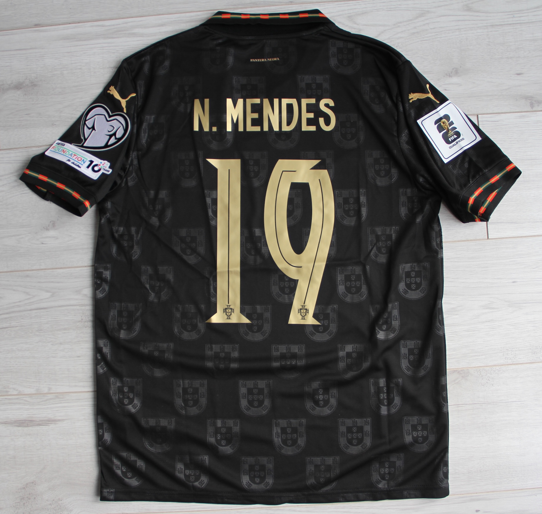 Egzemplarz widoczny na zdjęciach z personalizacją N. MENDES 19 oraz nadrukiem meczowym: PORTUGAL / ARMÉNIA – 16 NOVEMBRO 2025 – PORTO.