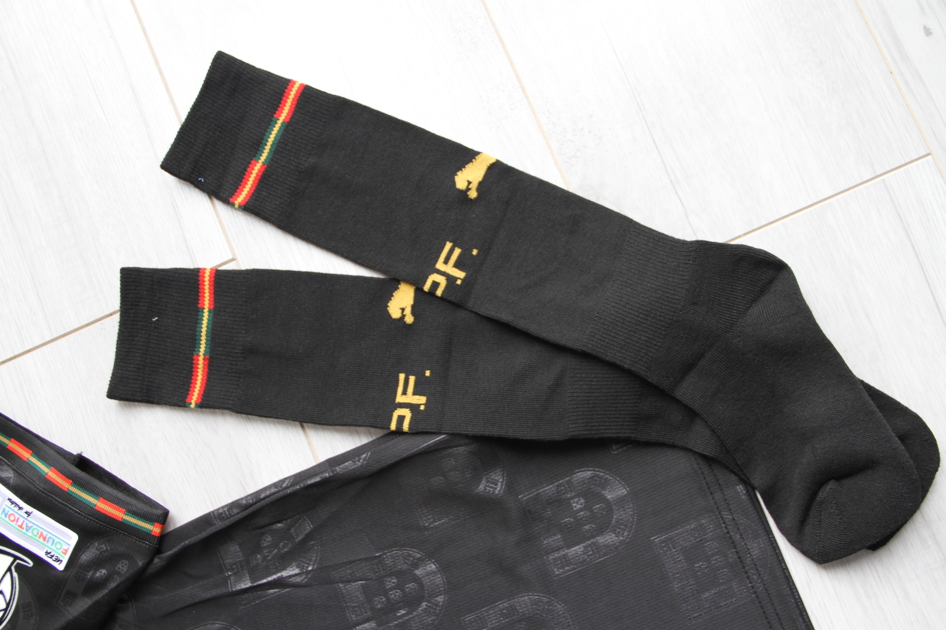 – Getry w kolorze czarnym z detalami Portugalii