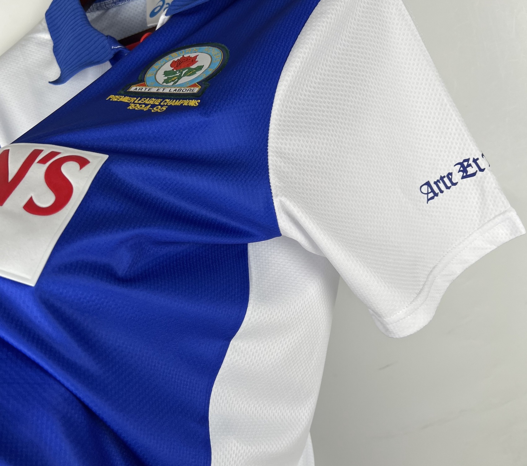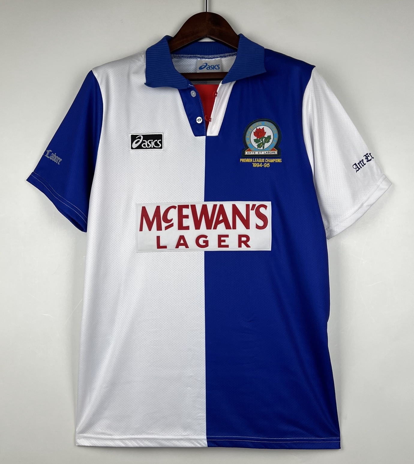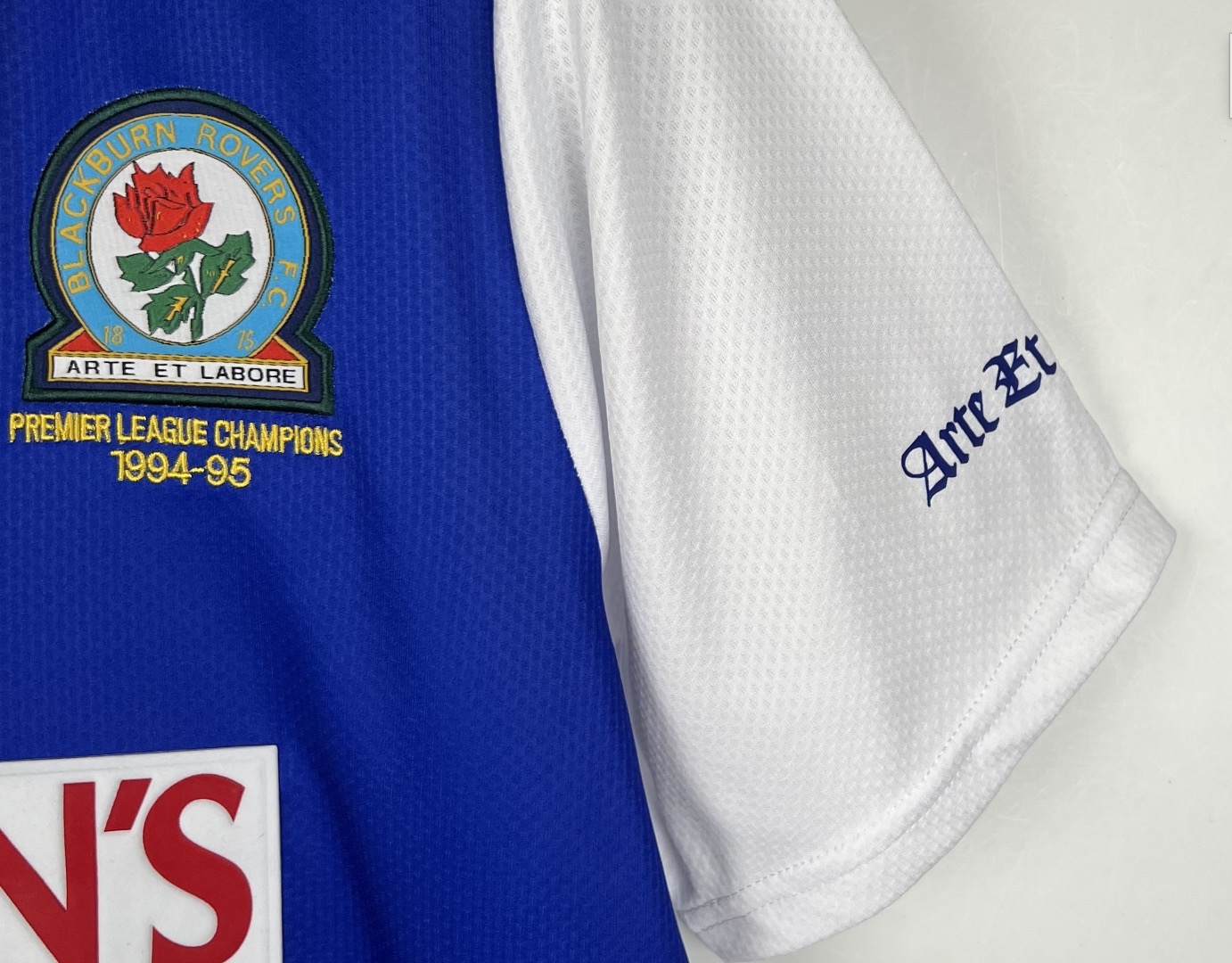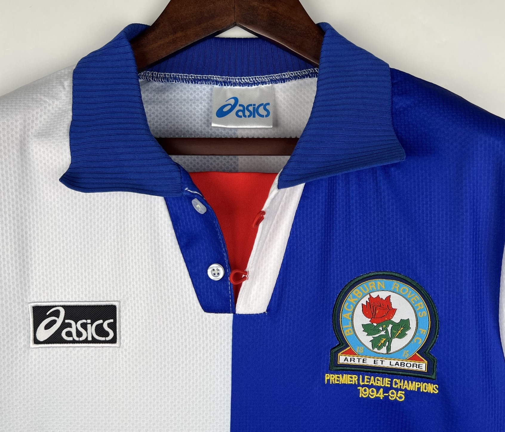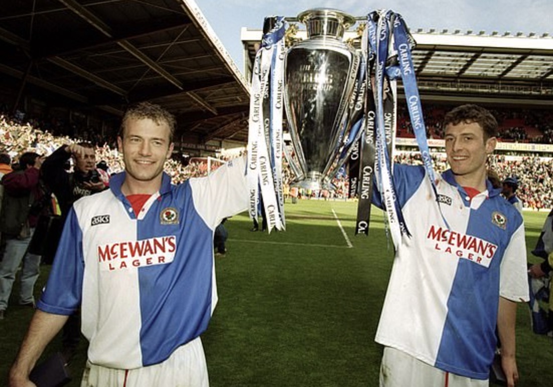 Sezon 1994/95 to historyczne mistrzostwo Anglii dla Blackburn Rovers. Alan Shearer zdobył 34 bramki i został królem strzelców ligi. Koszulka z tego sezonu to symbol złotej ery klubu i jedna z ikon Premier League lat 90.