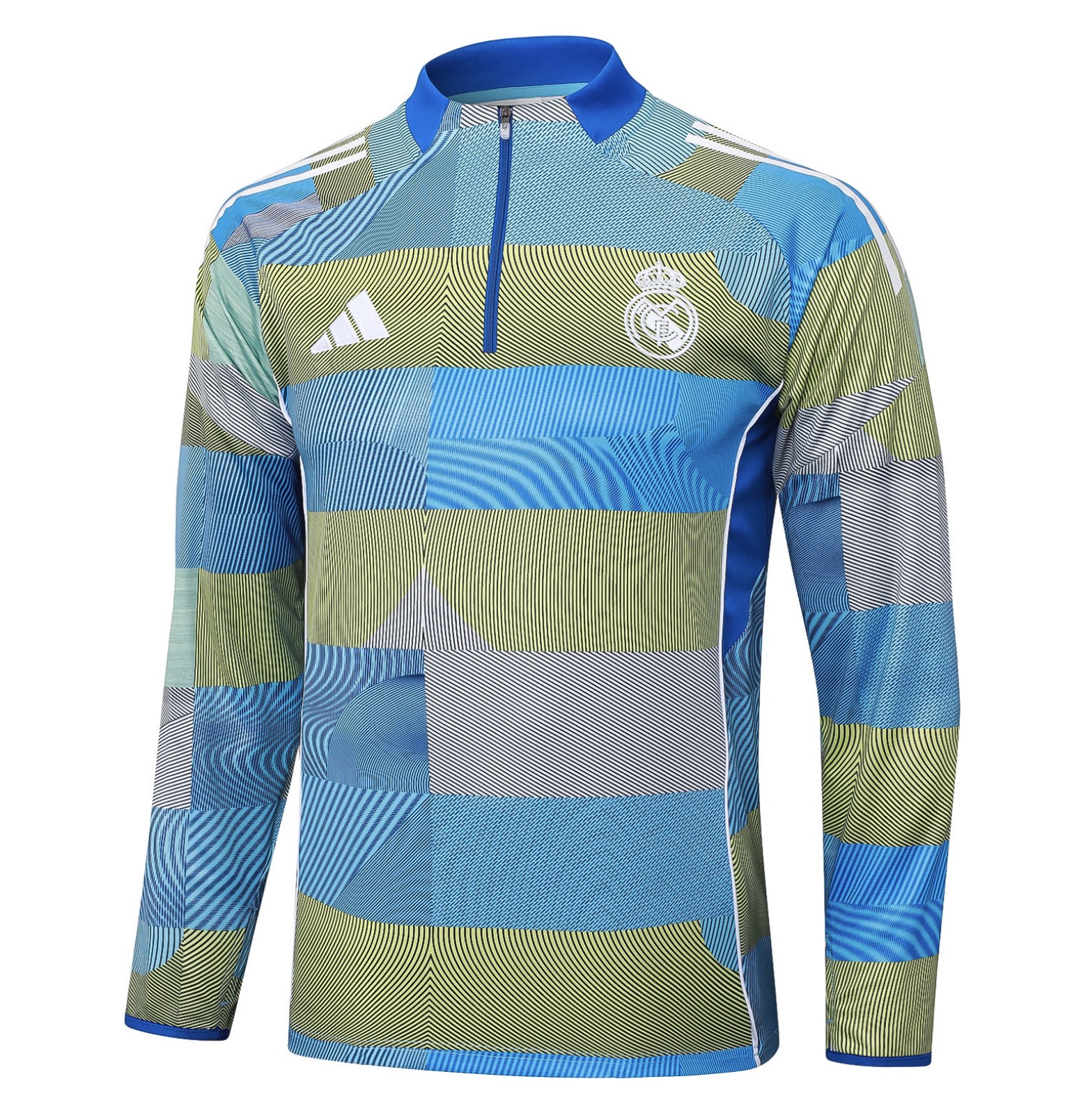 🔥 Nowoczesna bluza przedmeczowa Real Madrid CF na sezon 2025/2026. Dynamiczny, geometryczny wzór w odcieniach niebieskiego i zieleni, zamek 1/4 i sportowy krój adidas. ⚽ Idealna na trening, rozgrzewkę i codzienny styl fana Los Blancos. ⭐ więcej »